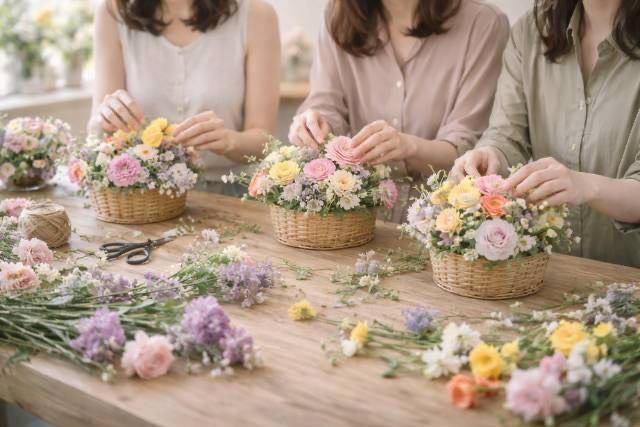 harufloraでは、皆さんへ季節のお花を通して、ほんの少しリラックスしながら楽しめるフラワーデザインを提供しております。お花が好きで、「いつかやってみよう」「時間ができたらやってみよう」と考えている方に、ぜひ体験レッスンに参加していただけたらと思います。